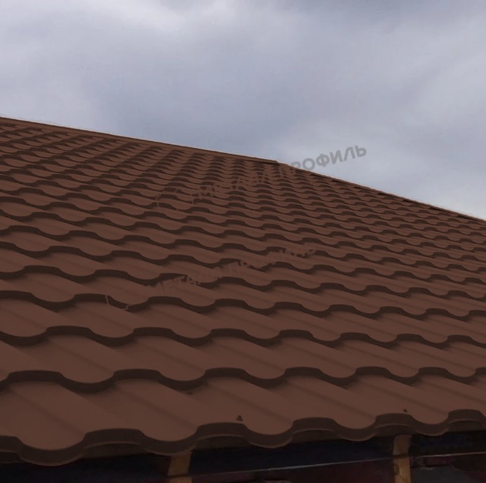 Профиль обеспечивает элегантный вид крыши, повышая общую привлекательность здания. Легкий вес (около 5 кг/м²) упрощает транспортировку и монтаж, экономя время и силы. В сравнении с натуральной черепицей, этот материал в 2-3 раза дешевле, но не уступает в визуальном эффекте.