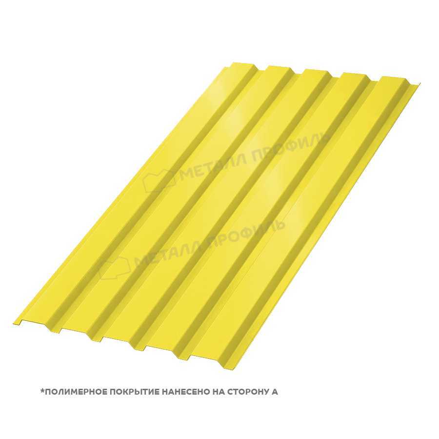Профлист МП-35 с толщиной 0,7 мм и полиэстеровым покрытием в цвете RAL 1018 представляет собой надежный материал для кровли и фасадов. Он сочетает прочность металла с эстетичным желто-цинковым оттенком, обеспечивая долговечность и защиту от коррозии. Идеален для строительства в различных климатических условиях.